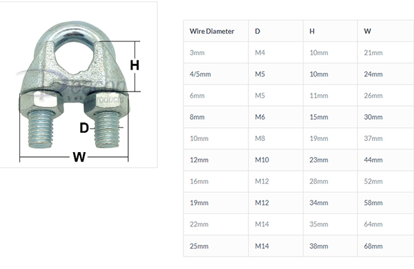Commercial pattern wire rope grip, Galvanised DIN 741. Often known as Bulldog grips on construction sites where they are used for joining Rebars together in reinforced concrete.
