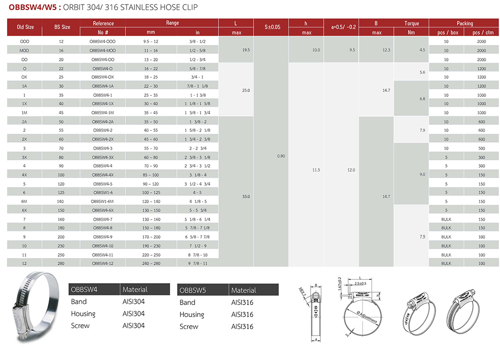 They are tested and “Kitemark™” certified according to British Standard 5315:1991. OBBSW4 is made entirely from AISI-304 stainless steel, austenitic grade 18/8 Stainless Steel.