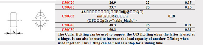The Collar fitting can be used to support the C03 fitting when the latter is used as a hingle. This Fast Clamp fitting should be used with size 7(G32) 42.4mm steel galvanised tubing.