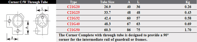 Fast Clamp Corner C/W Through Tube C21 Technical Information