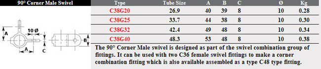 Fast Clamp Corner Male Swivel C38 Technical Information
