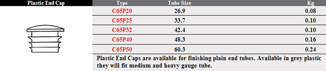 Plastic end caps are available for finishing plain end tubes. available in grey plastic they will fit medium and heavy gauge tube. This Fast Clamp fitting should be used with size 7(G32) 42.4mm steel galvanised tubing. Fully compatible with popular systems such as Kee Klamp.