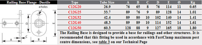 Fast Clamp Railing Base Flange C12 Technical Information
