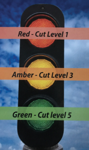 The traficode colour code system uses 3 colours to clearly identify the cut level of protection these three gloves can provide.