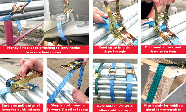 Hardman Ratchet Tie Down Strap: - Quick release mechanism. - Easily adjusted to desired tension. - Suitable for transport and building industries, as well as home. - Zinc plated, heat treated double "J" hooks. - Tested to 5 tonne.
