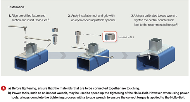 Installation is fast and simple using Lindapter's innovative installation nut allowing Flush Fit to be installed without the requirement of specialist skills or equipment.