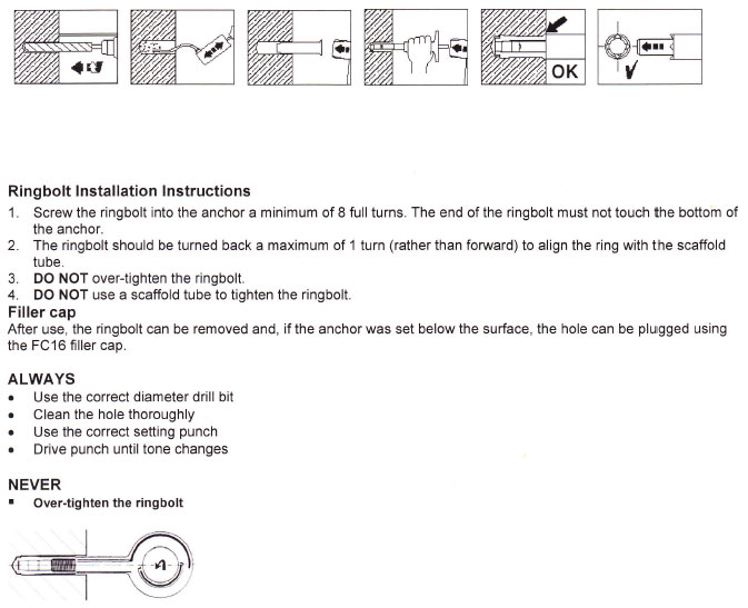 4. DO NOT use a scaffold tube to tighten the ringbolt.