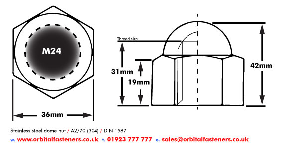 Stainless steel A2/70 (304) dome nut. DIN 1587
