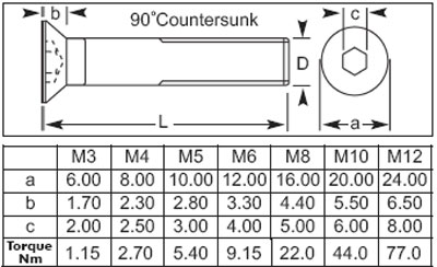 Iso Metric Countersunk Socket Head Screws. Grade 10.9 DIN 7991. Made to specifications ISO 10642