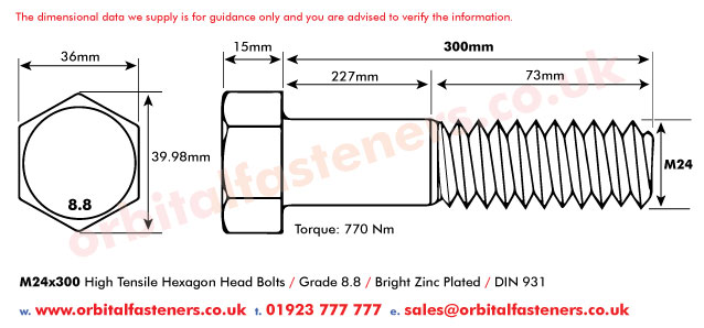 Thread lengths for bolts up to 125mm are twice the thread diameter plus 6mm. Over 125mm and up to 200mm are twice the thread diameter plus 12mm, and over 200mm is twice the thread diameter plus 25mm.