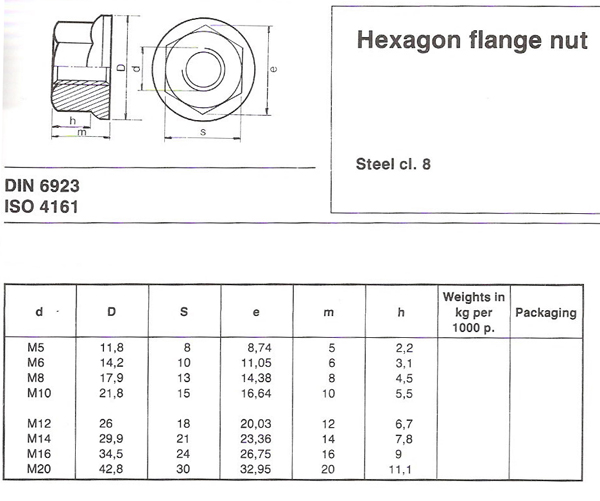 M6 Hexagon Serrated Flange Nut, 10mm across flats, 14.2mm Flange Diameter. Bright Zinc Plated. DIN 6923. Class 6