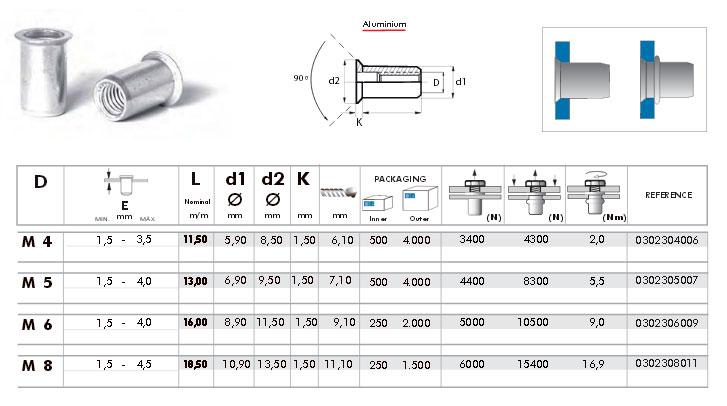 Rivetnut, Countersunk Head, Steel Grooved, M6, Grip range 1.50 - 4.0mm