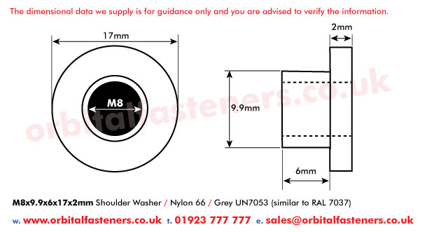 These shoulder washers have been designed to mimic the dimensions for standard form A washer, each size is available in two shoulder lengths & fit into standard hole sizes eg. M6 washer fits into a 8mm hole, M8 fits into 10mm hole etc...