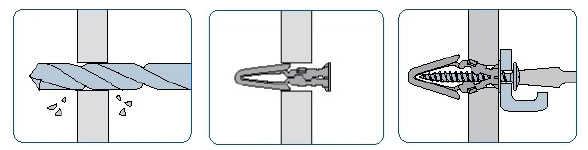 Rawl 10-408 Plasterboard Plug for fixing to cavity walls and ceillings of low structural strength. Ideal for overhead fixings in plasterboard, e.g. installing overhead lights & installation of electrical fitting on cavity walls.