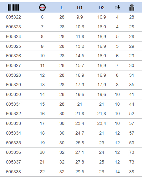 Made according to standard ISO 2725-1 (only metric dimension)